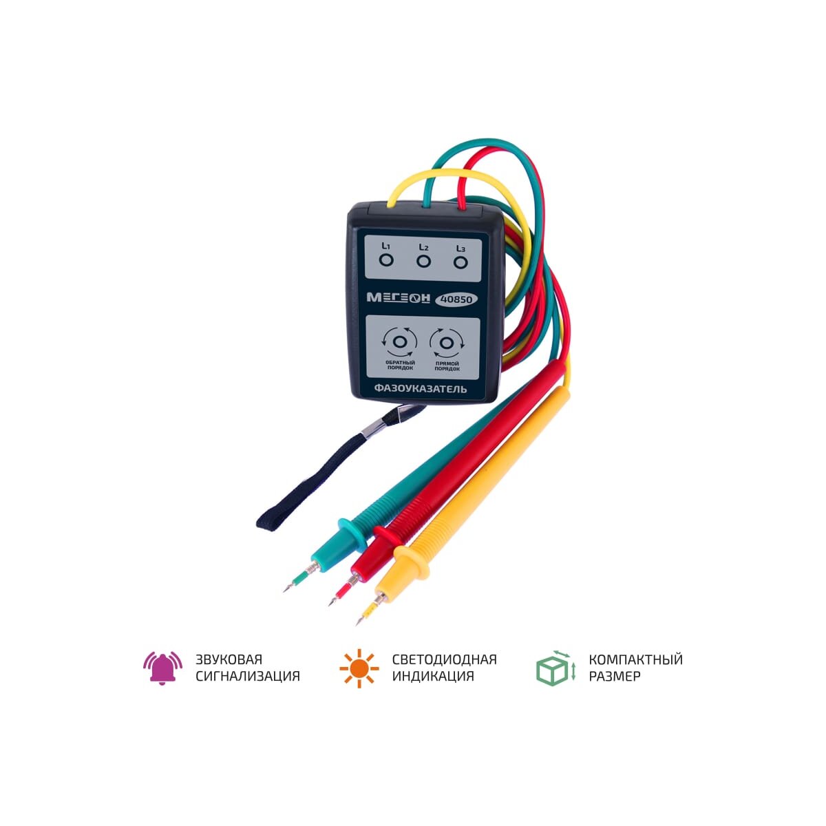 Фазоуказатель - это портативное устройство, которое позволяет быстро и точно проводить измерения. О порядке чередования фаз или их отсутствии сигнализируют светодиоды на лицевой панели и встроенный зуммер. Прибор надежен в эксплуатации и соответствует второму классу безопасности. Благодаря измерительным щупам типа "Крокодил", поставляемым в комплекте, пользоваться фазоуказателем просто и удобно.