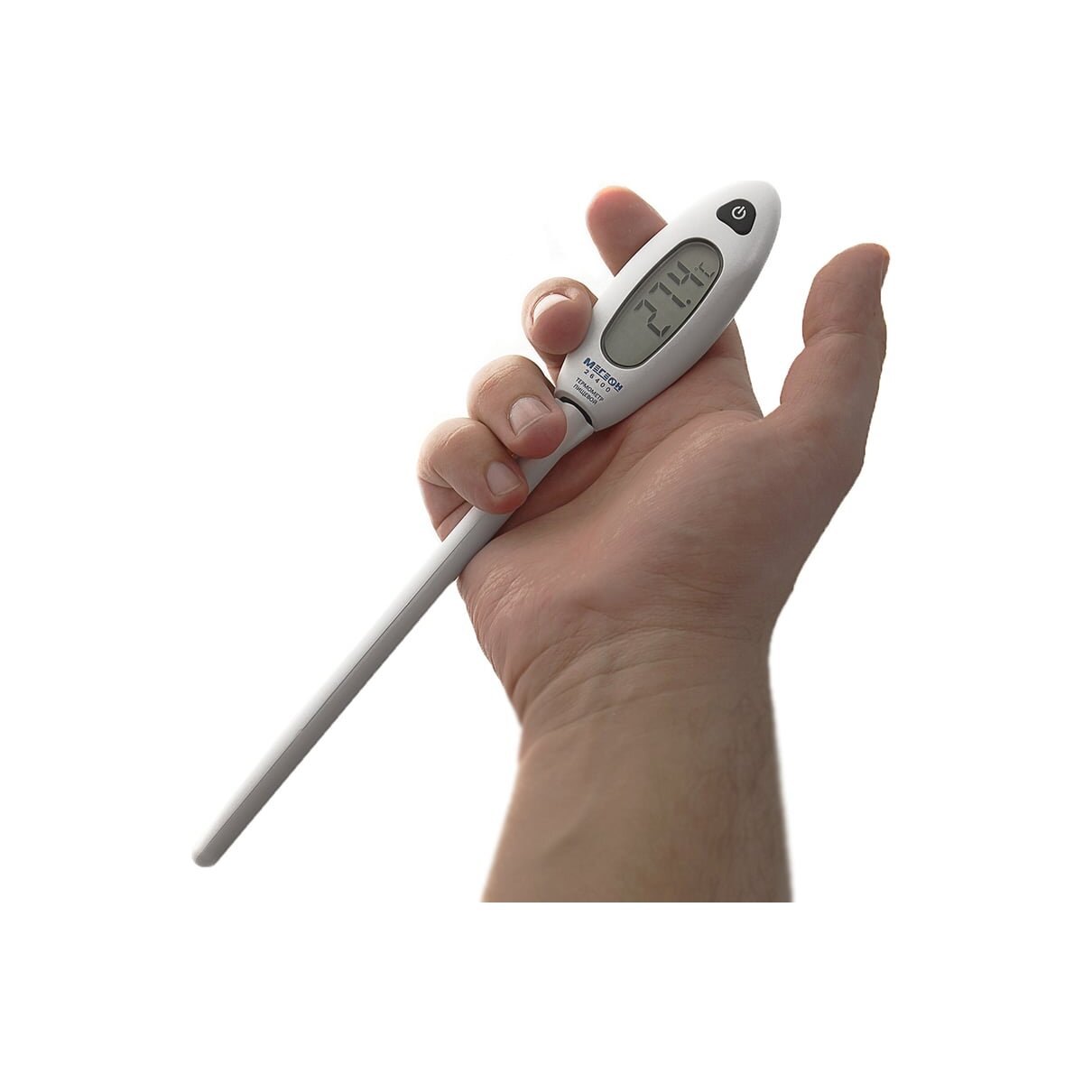Контактный термометр (тип - игла), в основном используется для измерения температуры пищевых продуктов. Зонд термометра выполнен из нержавеющей стали высшего качества. При помощи термометра с зондом можно точно отслеживать температуру приготовления пищи (в духовке, на гриле, в воде). Термометр также применяют, в различных сферах деятельности (работа с отопительным и холодильным оборудованием, при обработке пластиков и резины). Может также приняться для работы с растениями - поможет узнать температуру у корневища. Простота эксплуатации достигается простому управлению одной кнопкой на панели. Помимо измерения текущих значений температуры предусмотрено удержание максимальных и минимальных показателей нагрева или охлаждения. Благодаря функции автоматического выключения увеличен срок службы батареи.