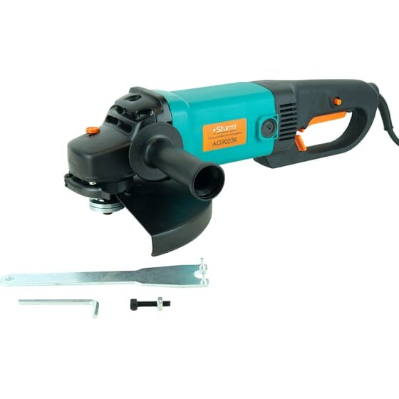 Угловая шлифмашина Sturm AG9023R - мощный инструмент для продолжительного использования. Применяется в строительно-отделочных работах для шлифовки, обдирки и резки материалов из металла, камня, бетона и др. Укомплектована электродвигателем мощностью 2100 Вт, скорость вращения 6000 об/мин. Рабочая насадка - диск диаметром 230 мм. Безопасная замена рабочего диска производится за счет фиксации шпинделя. Такие функции, как: блокировка кнопки включения, ограничение пускового тока обеспечивают безопасную и надежную работу с инструментом.