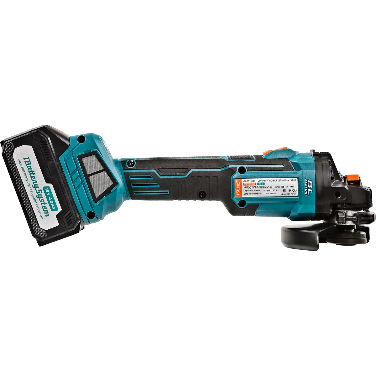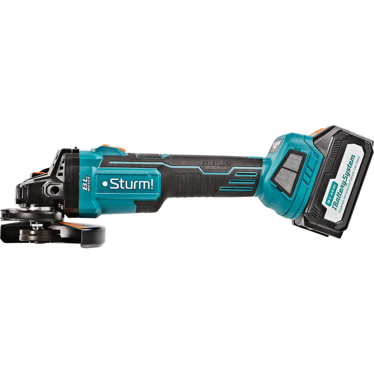УШМ аккумуляторная CAG18125BLE Sturm! 18В является частью системы 1BatterySystem, обеспечивающей совместимость одного и того же аккумулятора с целым рядом наименований инструмента.