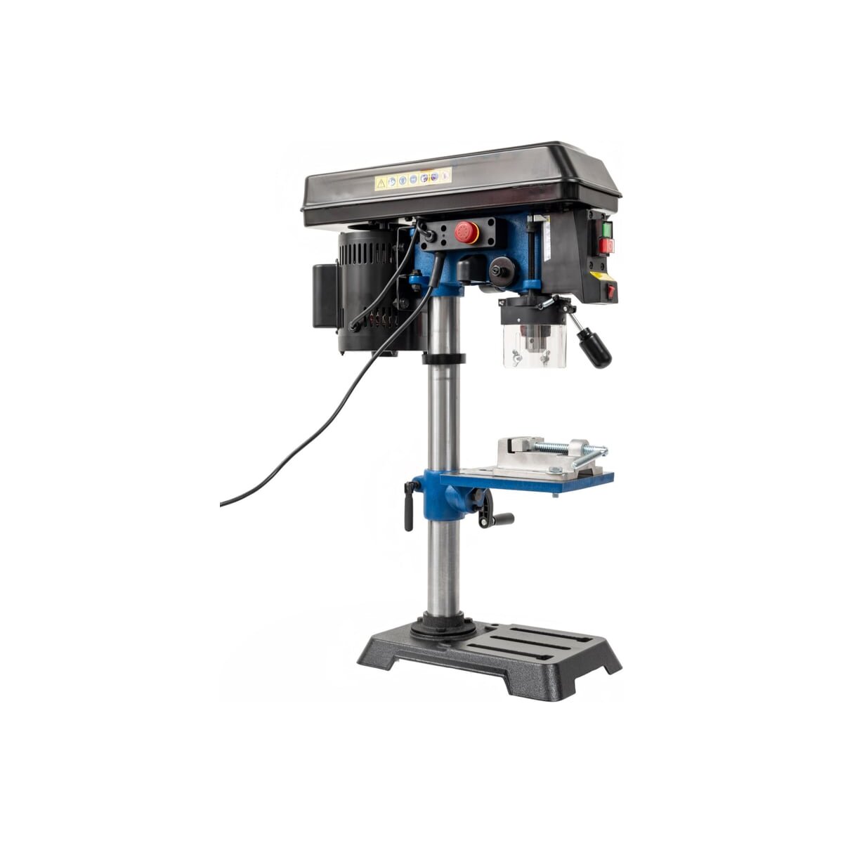 Для точной работы станок имеет несколько полезных функций: входящие в комплект тиски надежно фиксируют заготовку на столе, предотвращая смещение и ошибки при сверлении.