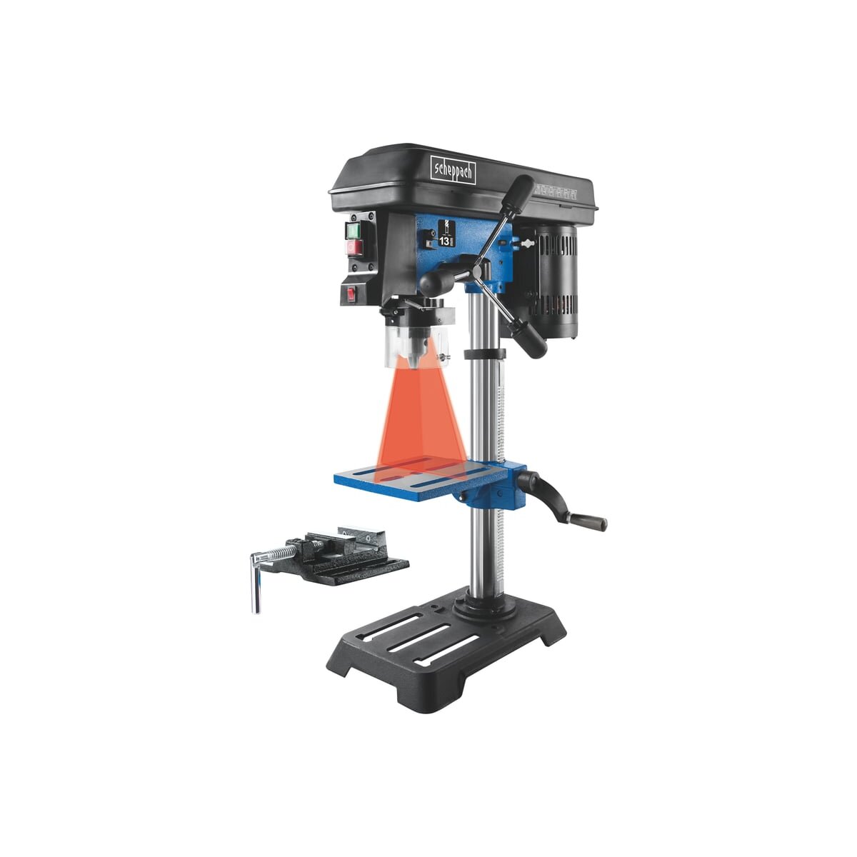 Настольный сверлильный станок Scheppach DP16SL с интегрированным лазером делает точное сверление легким. Будь то металл, пластик или древесина — благодаря пяти скоростям, тискам и встроенному лазеру возможности применения так же разнообразны, как и проекты домашнего мастера.