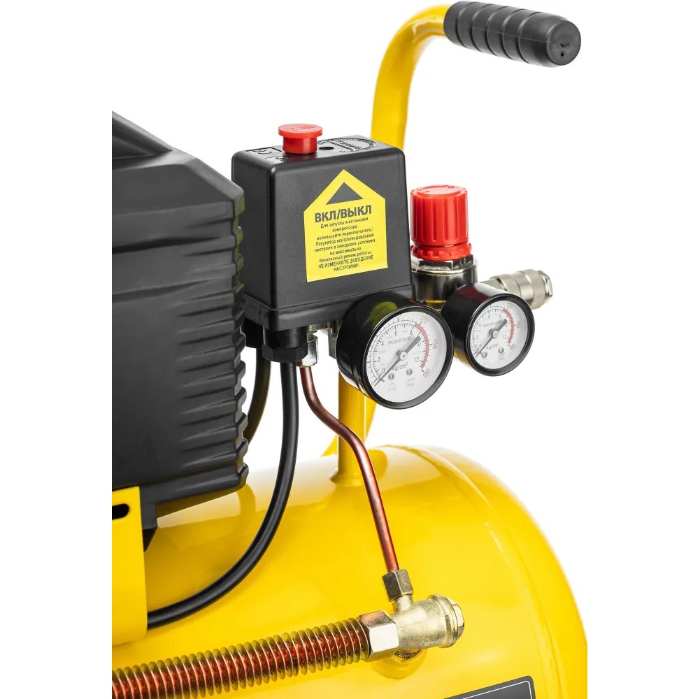 -емкость ресивера 24 л обеспечивает достаточный запас воздуха для продолжительной работы без перезапуска;