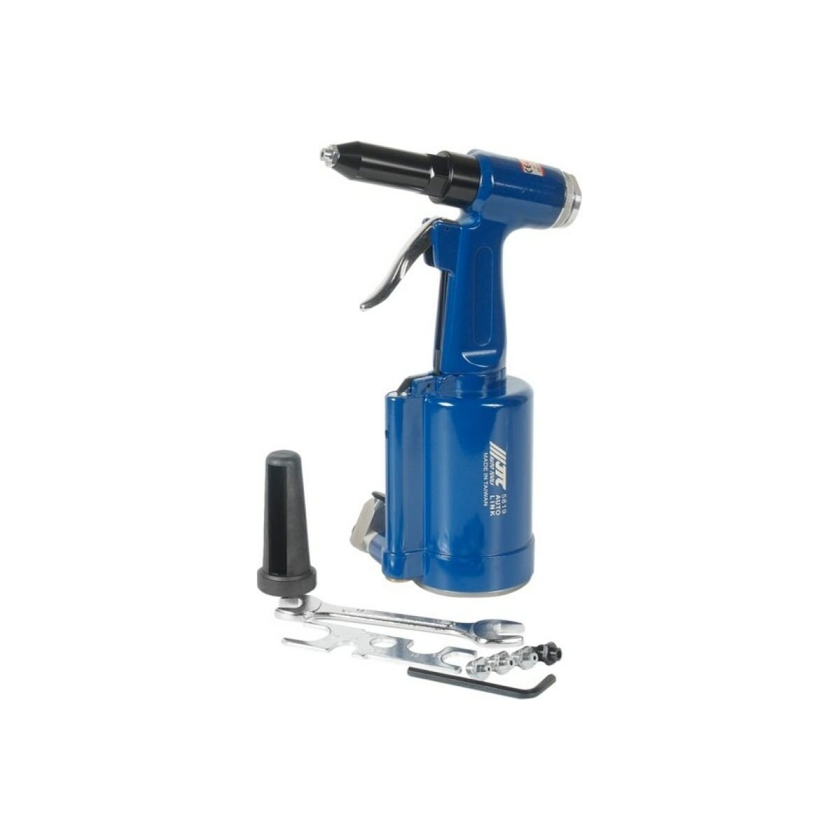 Технические характеристики JTC JTC-5819Тип инструментазаклепочникКласс товарапрофессиональныйТип заклепоквытяжныеТип соединениярапид (EURO)Давление6.8 атмДиаметр воздушного штуцера1/4F дюймРасход воздуха на удар5 л/ударМатериал заклепокалюминий/медьMax диаметр заклепки (алюминий)6.4 ммMax диаметр заклепки (медь)6.4 ммРазмер заклепок2.4; 3.2; 4.0; 4.8; 6.4 ммУпаковкакоробкаГабариты без упаковки170х77х277 ммВес нетто1.65 кг