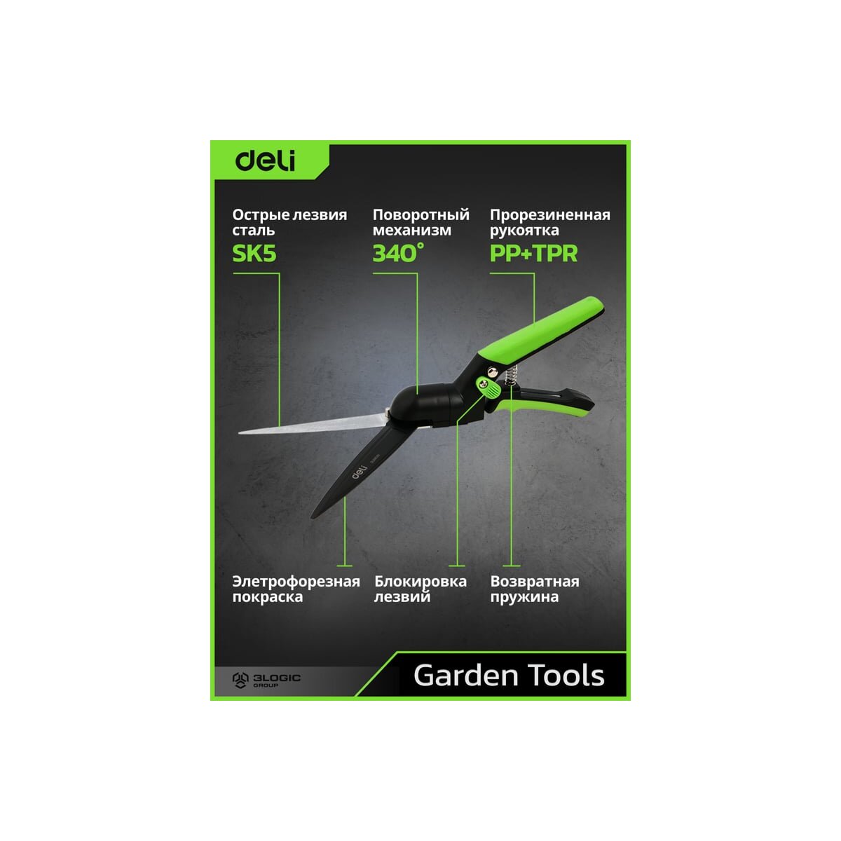 Ножницы газонные поворотные Deli DL580351 – это универсальный инструмент для точной и аккуратной стрижки травы, кустарников и декоративных растений.