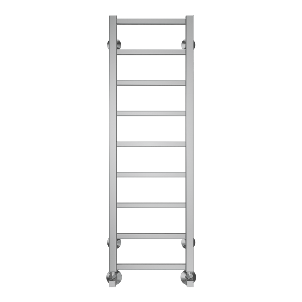Модель водяного полотенцесушителя Terminus Контур относится к линейке в стиле хай-тек, тяготеющей к лаконичным формам и хромированным поверхностям, и отличается наличием дополнительной прогреваемой полки для хранения и сушки полотенец.
