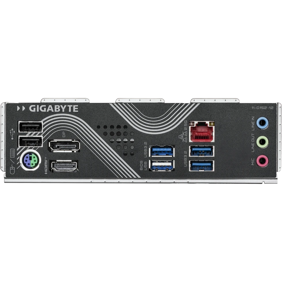 PS/2, 3 x USB 2.0, 3 x USB 3.2 Gen1, HDMI, DisplayPort, RJ-45