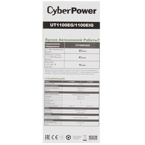 ИБП CyberPower UT1100EG обеспечивает на выходе модифицированную синусоиду. Устройство может функционировать в условиях нестабильного напряжения в сети. Минимально допустимое входное напряжение составляет 165 В, а максимально допустимое – 290 В. Поддерживается функция холодного старта. Это значит, что вы сможете включить ИБП (обеспечивая питание нагрузки в автономном режиме) в условиях отсутствия внешнего электропитания. Информация о текущем статусе работы модели выводится на светодиодные индикаторы.