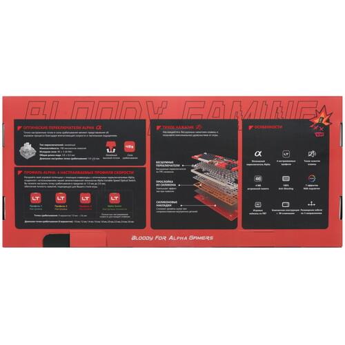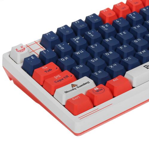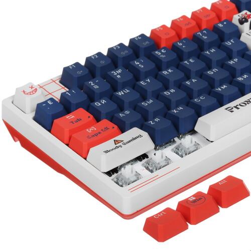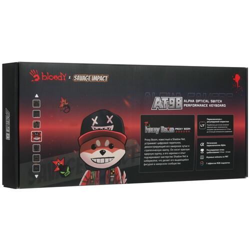 Клавиатура проводная A4Tech Bloody AT98 Proxy Boom оборудована линейными переключателями, которые уменьшают нагрузку на пальцы и отличаются плавным ходом, а также бесшумным нажатием. Жизненный цикл модели рассчитан на 100 млн кликов. Кейкапы выполнены из пластика повышенной плотности, устойчивого к истиранию символов.