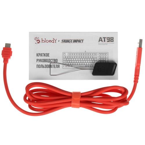 Подключение клавиатуры A4Tech Bloody AT98 Proxy Boom к ноутбуку, ПК, телевизору производится с помощью 1.8-метрового USB-кабеля. Конфигурация включает 99 клавиш, в том числе цифровой блок для ввода числовых данных. Интегрированная RGB-подсветка защищает пользователя от погрешностей ввода при недостаточном внешнем освещении. Шумоизоляция бежевого пластикового корпуса блокирует громкие посторонние звуки.