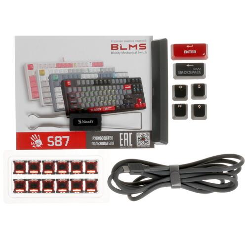Клавиатура проводная A4Tech Bloody S87 Energy обладает отсоединяемым 1.8-метровым кабелем для синхронизации с необходимыми устройствами. Тихое нажатие и уменьшение нагрузки на пальцы гарантируют линейные переключатели Bloody BLMS Red Plus. За мгновенный доступ к игровым опциям несут ответственность программируемые клавиши. Компактные размеры достигнуты отсутствием цифрового блока.