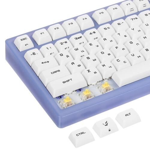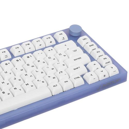 ARDOR GAMING Patron 75 с горячей заменой износившихся клавиш идет в комплекте с дополнительными кейкапами. Вы можете подключать клавиатуру через кабель длиной 1.8 м, USB-ресивер или Bluetooth. По области кейкапов есть RGB-подсветка с настройкой палитры и эффектов свечения.