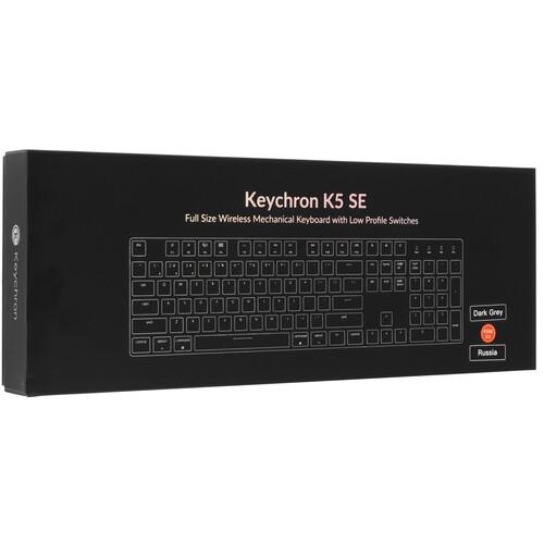 Корпус из пластика и алюминия гарантирует устойчивость к повреждениям. Для удобства игры и работы в условиях недостаточной освещенности реализована подсветка с палитрой RGB. Подключение выполняется двумя способами: беспроводным на основе интерфейса Bluetooth и проводным при помощи кабеля с разъемом USB. Автономная работа Keychron K5SE осуществляется от аккумулятора.