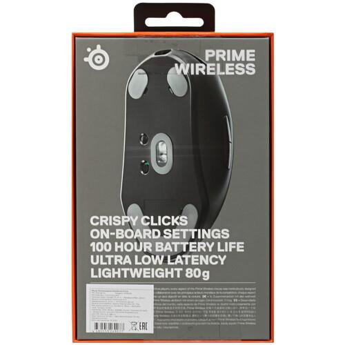 Мышь беспроводная SteelSeries Prime – игровая модель с 6 кнопками и RGB-подсветкой. Матовый пластик защищает от скольжения, маскирует отпечатки пальцев и подобные загрязнения.
