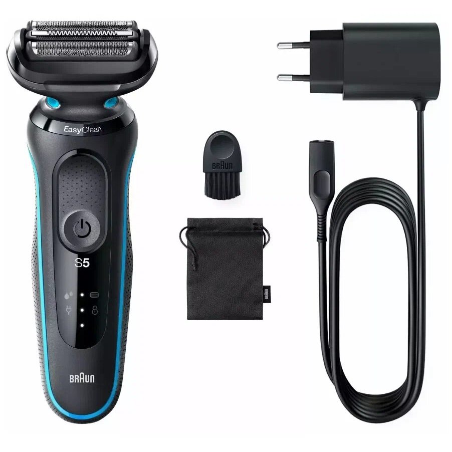 Подробная комплектация: бритва, адаптер питания с автоматической регулировкой от 100 до 240 В, щетка для чистки