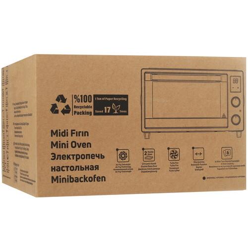 Мини-печь выполнена в металлическом корпусе с прозрачным стеклянным окном, сквозь которое можно контролировать степень готовности блюда. Прорезиненные ножки гарантируют устойчивое размещение на поверхности. В комплекте с Simfer M2200 поставляются противень и решетка.