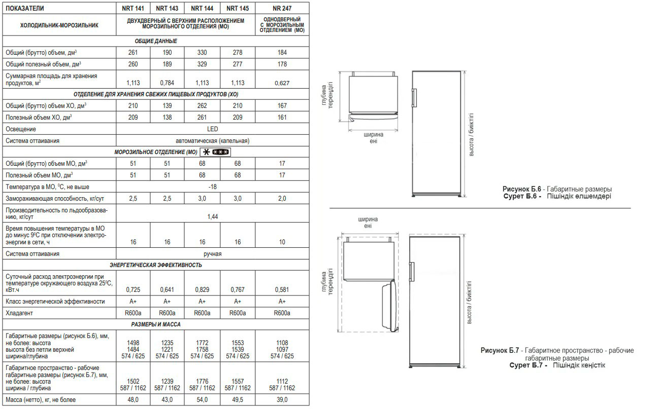 Общий объем Nordfrost NR 247 032 составляет 261 литр. Полезный объем холодильной камеры – 209 литров. Этого достаточно для хранения большого количества продуктов. Морозильная камера имеет полезный объем 51 литр. Мощность замораживания составляет 2.5 кг в сутки.