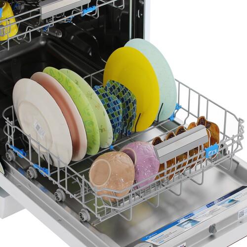 Midea MFD60S510Wi оснащена всем необходимым для комфортной эксплуатации. Регулируемые по высоте корзины позволяют разместить посуду разных размеров. Держатели для бокалов обеспечивают их надежную фиксацию во время мойки.