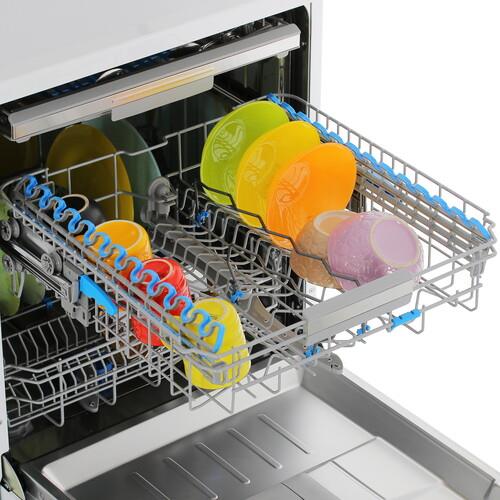 - Вместительность: Три регулируемые корзины вмещают до 14 комплектов посуды.