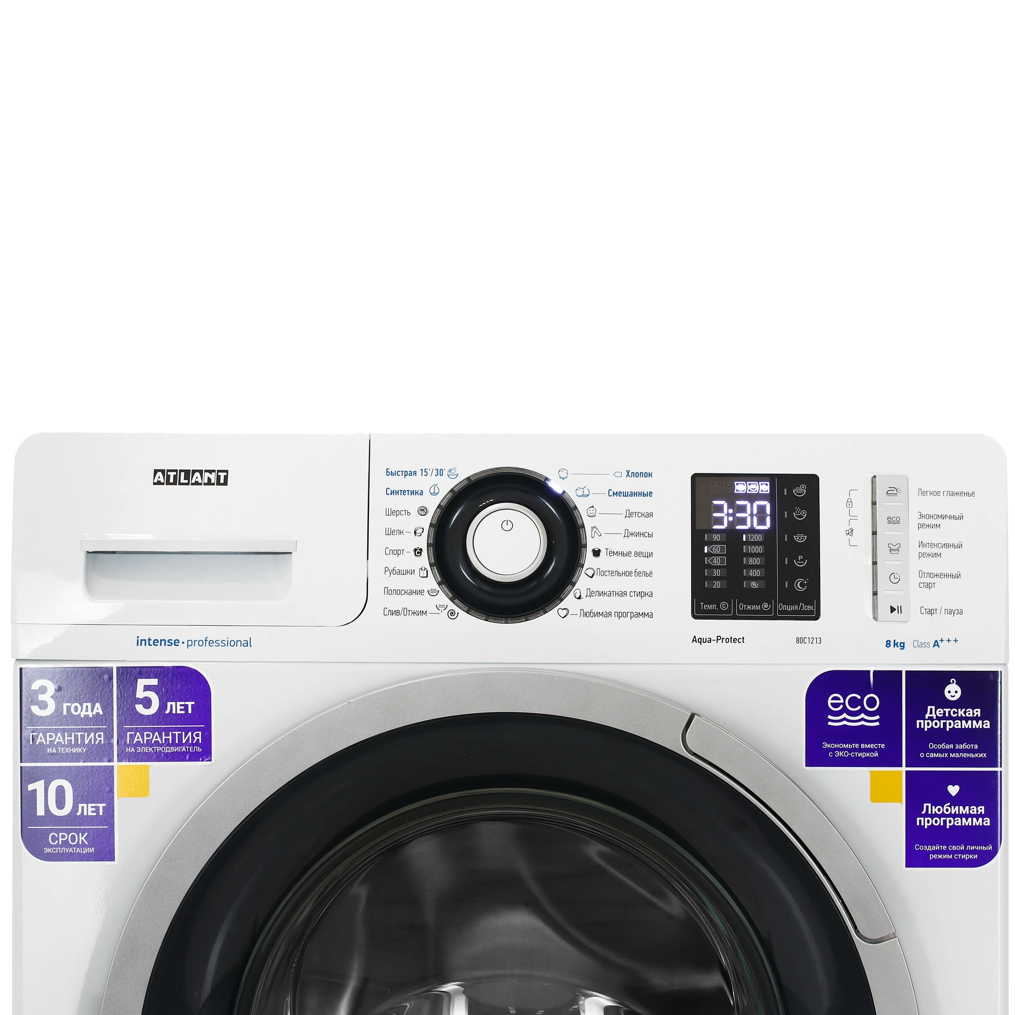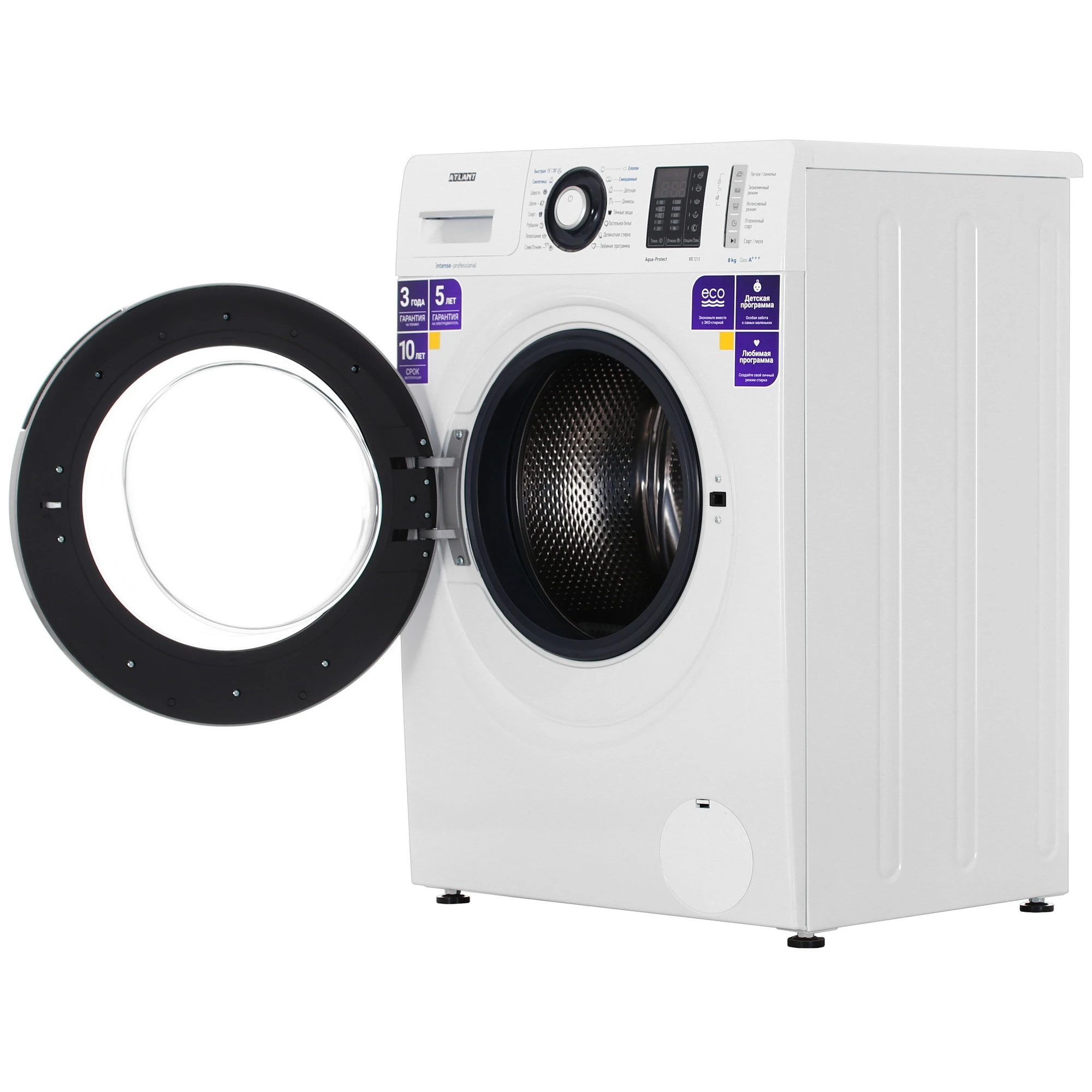 блокировка от случайного нажатия, выбор скорости отжима, выбор температуры, добавление воды во время стирки, дополнительное полоскание, замачивание, интенсивная стирка, легкая глажка, ночная стирка, отсрочка окончания, предварительная стирка, старт/пауза, экологичный