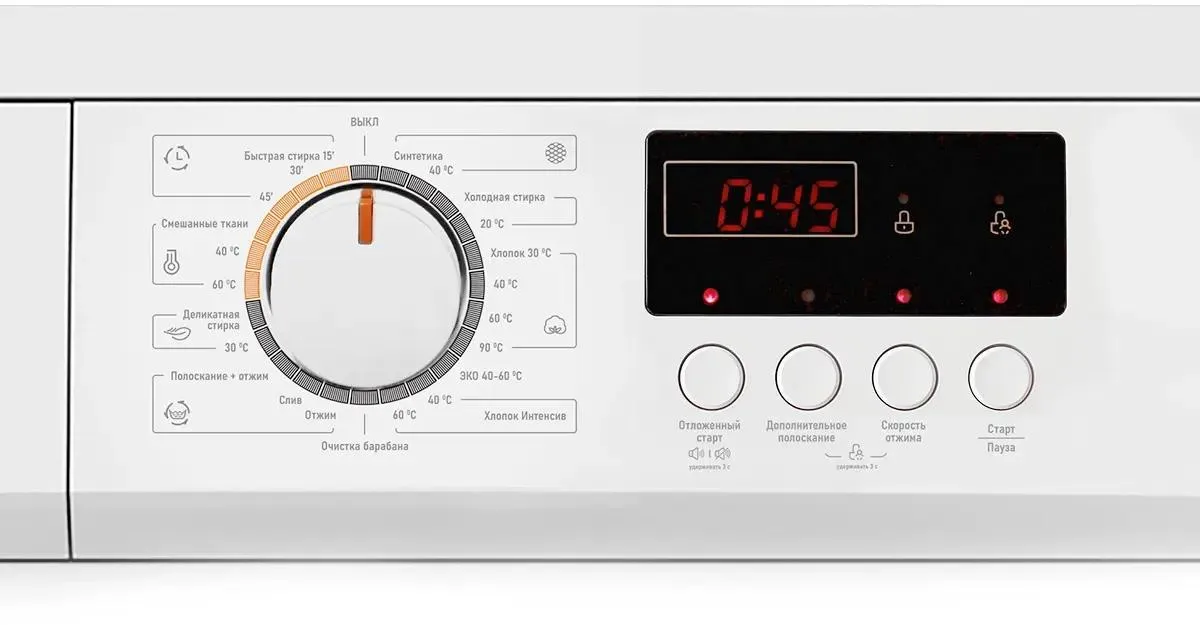 Хлопок, Синтетика, Смешанные ткани, Деликатная, Быстрая, Шерсть, Детская, Спортивная, Интенсивная, Полоскание, Отжим, Самоочистка