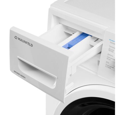 Стиральная машина MAUNFELD MFWM148WH с фронтальной загрузкой белья до 8 кг, электронное управление, LED дисплей, 16 программ стирки, отсрочка запуска, защита от детей, скорость отжима 1400 об/мин.