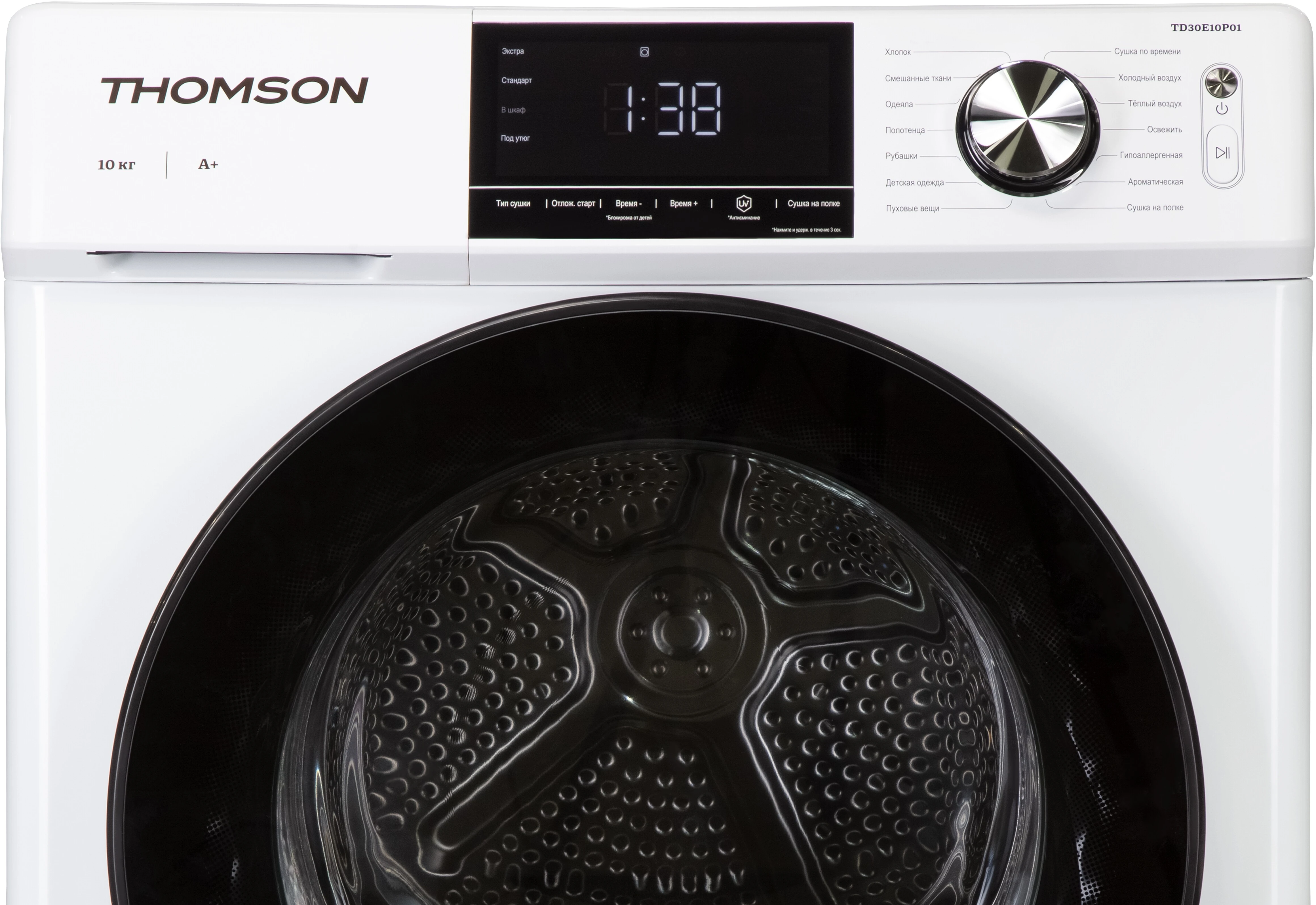 Модель рассчитана на сушку до 10 кг белья за один цикл, что делает её идеальным выбором для большой семьи или тех, кто предпочитает стирать и сушить белье большими партиями.