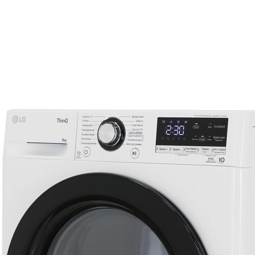 Сушильная машина LG DC90V3V6W с загрузкой на 9 кг поддерживает 14 программ, доступ к которым открывается через приложение LG ThinQ, сенсорные элементы и поворотный переключатель. Инверторный двигатель уменьшает уровень издаваемого шума и затраты на электричество. Функция антисминания не допускает появления складок на одежде. Подсветка барабана служит для отслеживания запущенного цикла и удобной разгрузки.