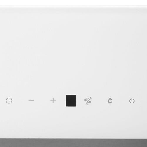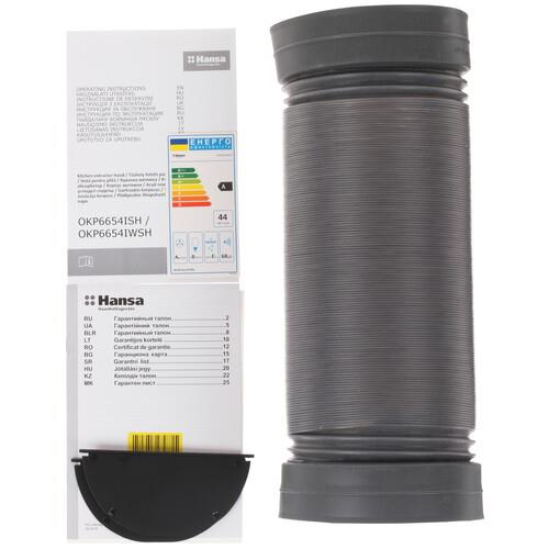 Сенсорная панель управления Hansa OKP6654IWSH расположена в самой верхней части, что будет удобно людям высокого роста и избавит прибор от включения детьми. Единственный двигатель вытяжки работает на 4 скоростях. Есть таймер, помогающий задать время отключения вентилятора: после приготовления пищи можно включить прибор и идти заниматься своими делами, зная, что он самостоятельно прекратит работу. Вытяжка может использоваться в режиме отвода и циркуляции. Для второго варианта потребуется дополнительно приобрести и установить угольный фильтр.