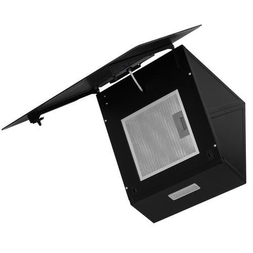 При подключении вытяжки Midea MH60AN364GB к вентиляционному отверстию она будет работать в режиме «Отвод». Загрязненный воздух будет выходить через гофрированную трубу. Если отверстия вентиляции нет, можно пользоваться прибором в режиме «Циркуляция». Для этого на входе устанавливается угольный фильтр. Воздух, загрязненный парами и запахами, проходит через него, очищается и выходит обратно в помещение. Для удобства управления используется сенсорная панель с дисплеем.