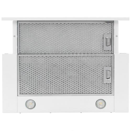 Вытяжка телескопическая HANSA OTP6241WH займет минимум места и будет практически не видна: ее корпус прячется внутрь навесного шкафчика, расположенного над варочной поверхностью. Ширина последней не может превышать, а лучше, чтобы была меньше 60 см. Производительности 550 м³/ч будет достаточно для эффективной очистки воздуха в помещении размером до 15 м².