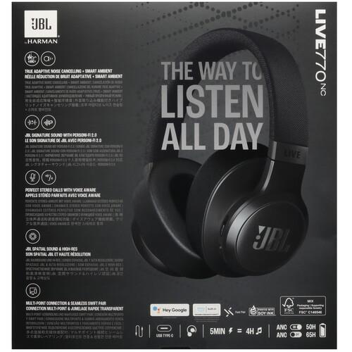 Наушники JBL Live 770NC обеспечивают мощный фирменный звук JBL в удобном и стильном оголовье полноразмерных наушников. Когда вы погружаетесь в свой мир музыки, полное адаптивное шумоподавление с технологией Smart Ambient позволяет не отвлекаться на посторонние звуки. Или вы захотите слышать, что происходит вокруг, продолжая слушать свой любимый плейлист или даже вести беседу, не снимая наушников. Вы можете легко получить доступ к любимому голосовому помощнику по команде или одним касанием чашки наушника, чтобы воспроизвести любимый плейлист, отправить сообщение своему другу, проверить погоду и многое другое. Вы сможете наслаждаться потоковой передачей музыки в течение 65 часов (50 часов с включенными Bluetooth и адаптивным шумоподавлением). Хотите большего? 5-минутная зарядка обеспечивает дополнительные 4 часа работы наушников. JBL Live 770NC подключается к двум устройствам Bluetooth одновременно, поэтому вы никогда не пропустите вызов, даже во время просмотра видео на вашем планшетном устройстве.
