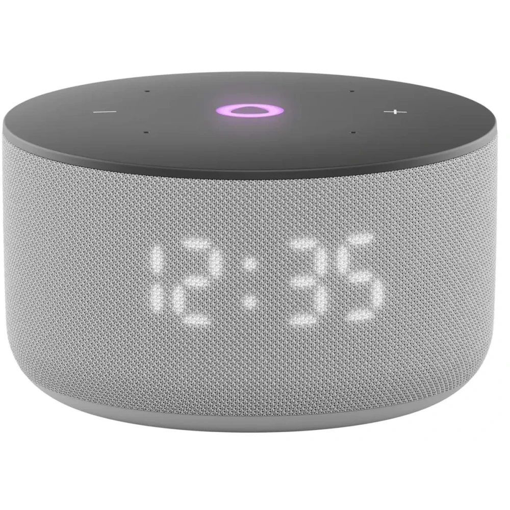 Колонка выполнена в лаконичном сером пластиковом корпусе, который легко впишется в интерьер спальни, кухни или рабочего кабинета. Ее главная фишка — монохромный светодиодный дисплей.