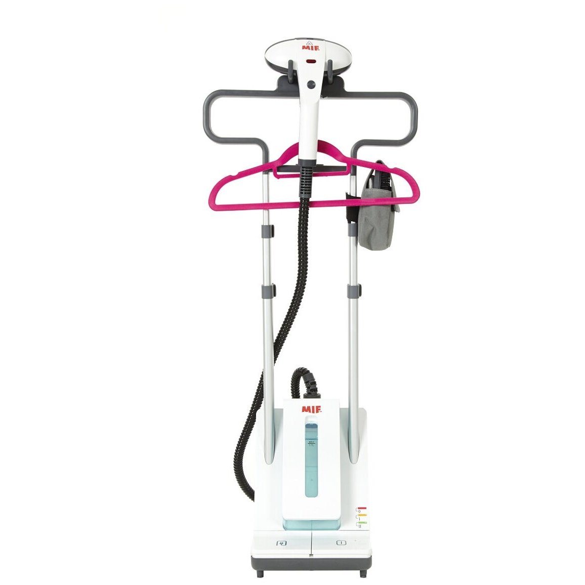 мощность утюжка - 500 Вт; футляр для аксессуаров, термоварежка, приспособление для отпаривания воротника, досочка из термостойкого пластика, вешалка с велюровым напылением, сумка MIE