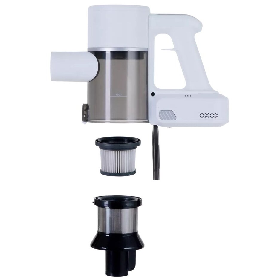 Комплектация: щелевая насадка, насадка 2 в 1, мини турбощетка, зарядное устройство, электрическая щетка для пола, напольная подставка, щеточка для очистки, батарея, труба