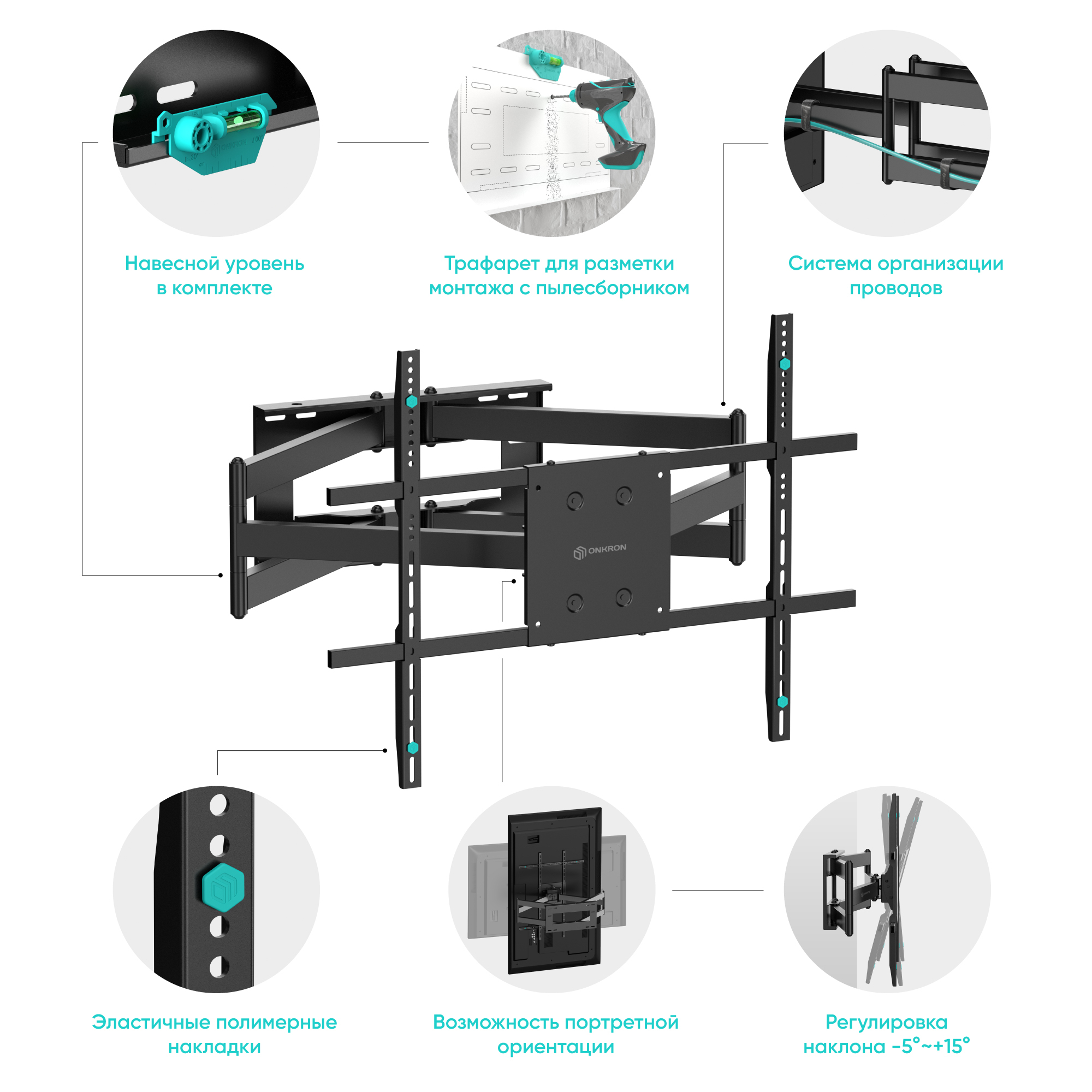 Вид кронштейна: Выдвижной, Наклонный, Поворотный