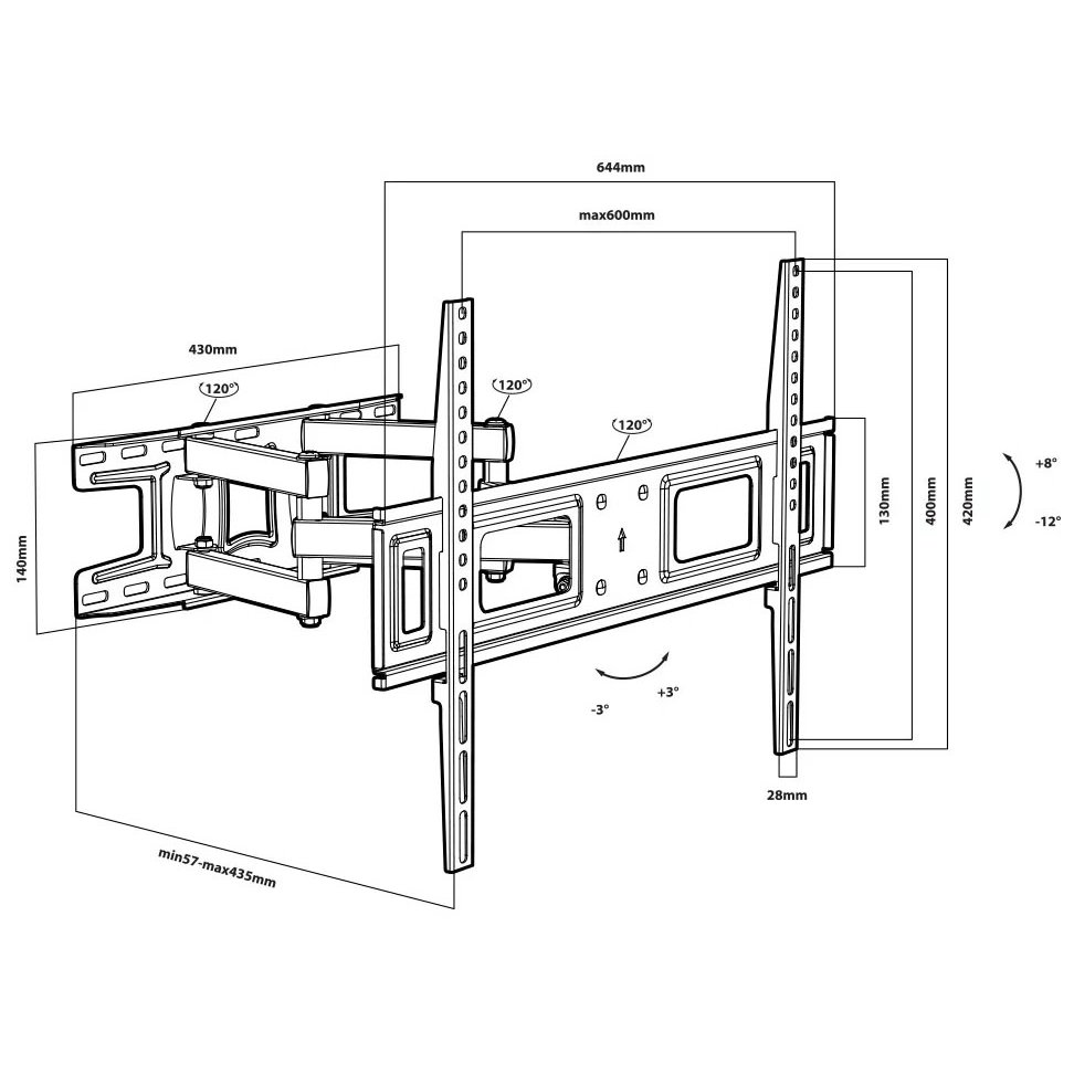 Дополнительная информация: есть кабель-канал, водяной уровень; вращение экрана на ±3° относительно стены