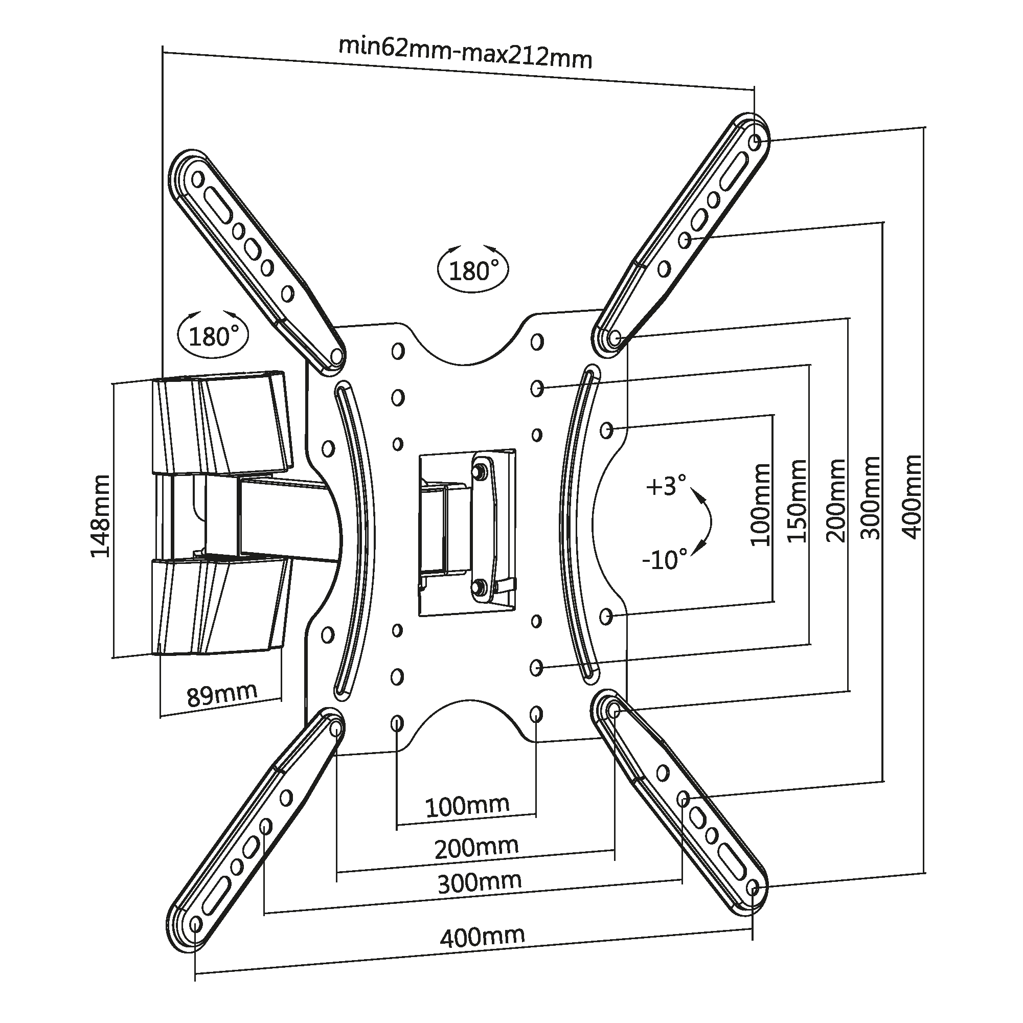 Расстояние от стены: 62~212 мм