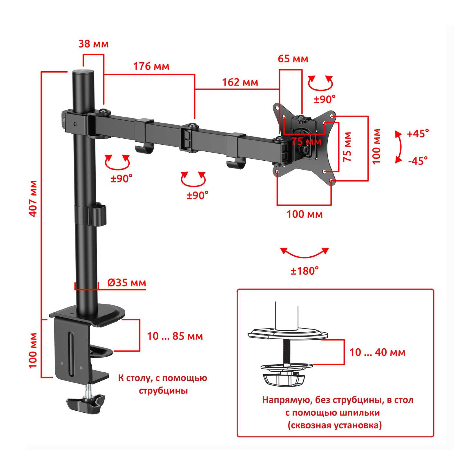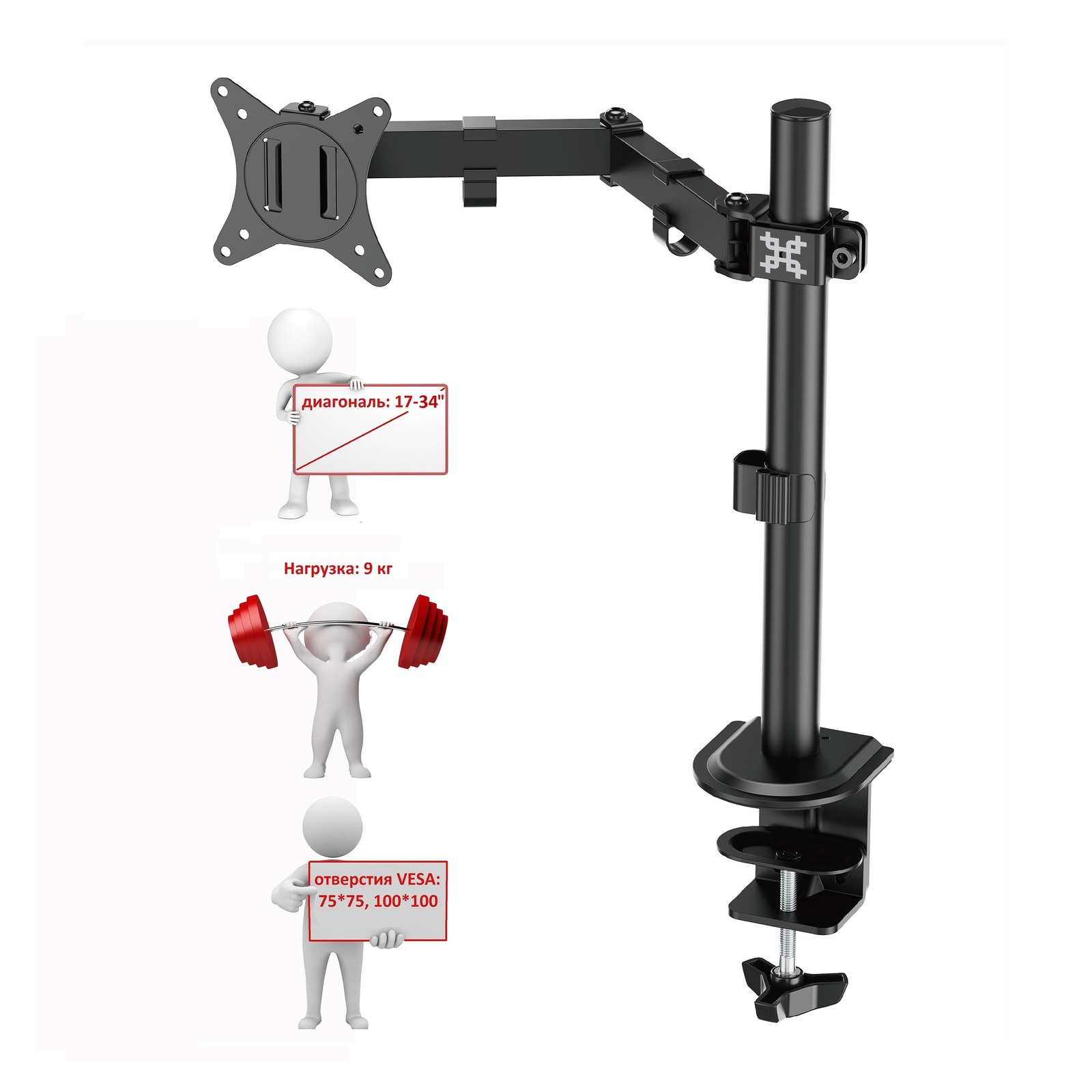 Тип кронштейна: Настольный со струбциной для монитора