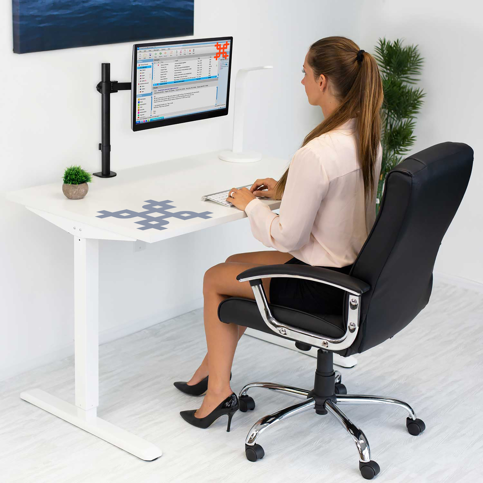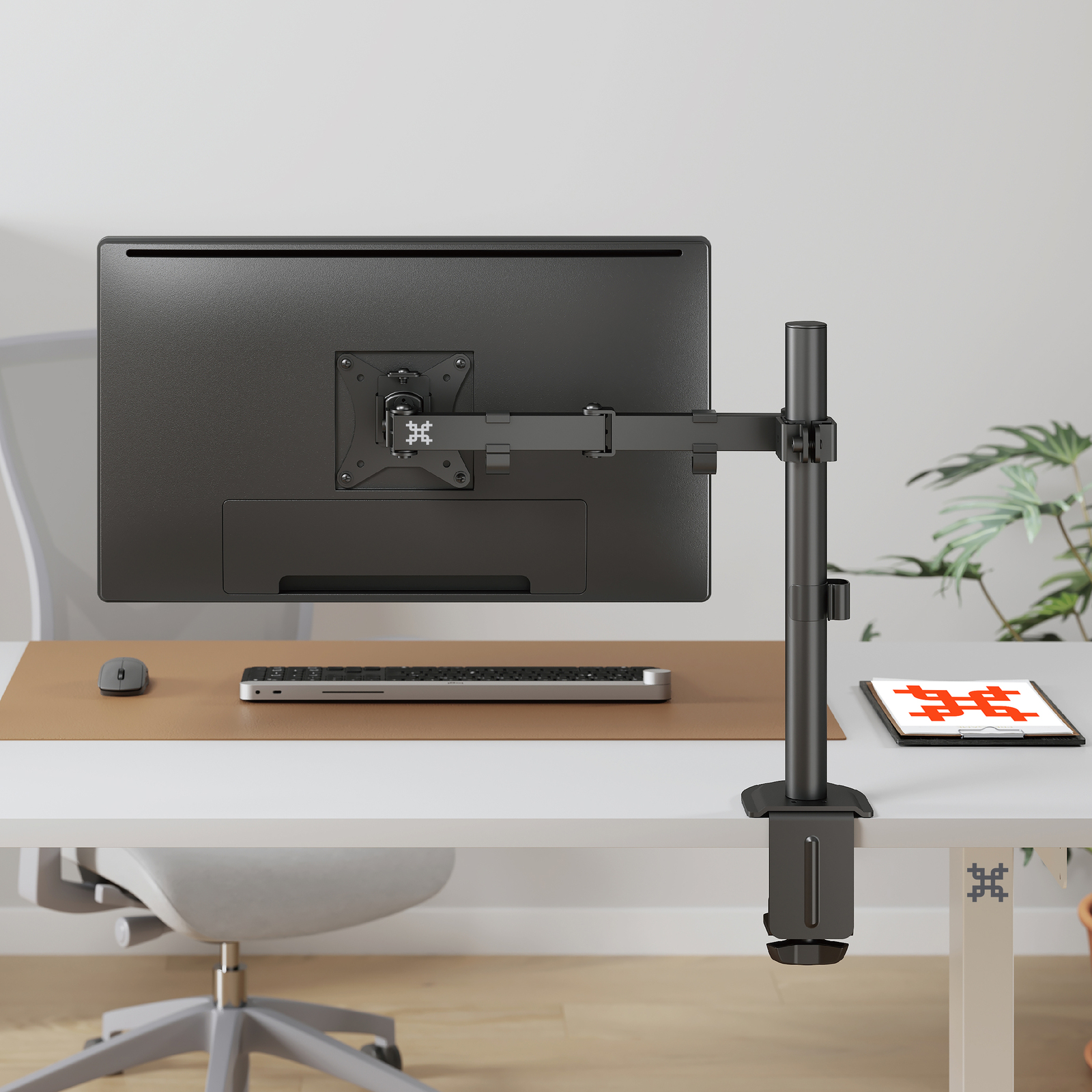 Вы сможете повернуть монитор и изменить расстояние по высоте на трубе лёгким движением руки, при этом монитор зафиксируется в настроенном положении.
