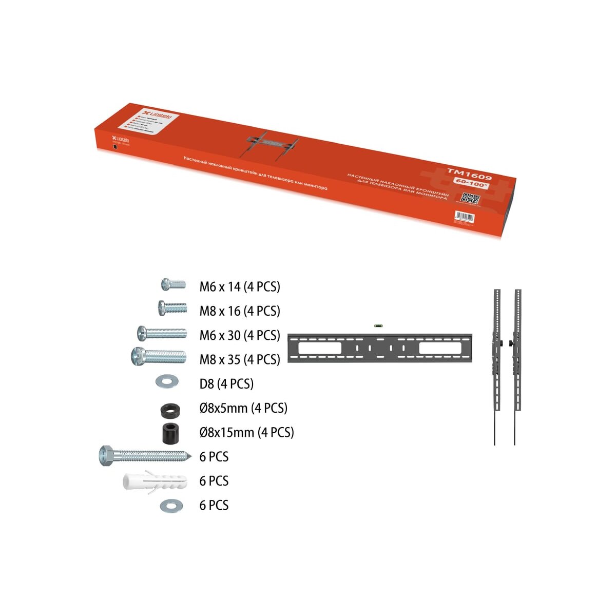 Настенный наклонный кронштейн серии Heavy Duty сверх мощный UNITEKI TM1609 предназначен для телевизоров с диагональю от 60 до 100 дюймов (152 – 254 см).