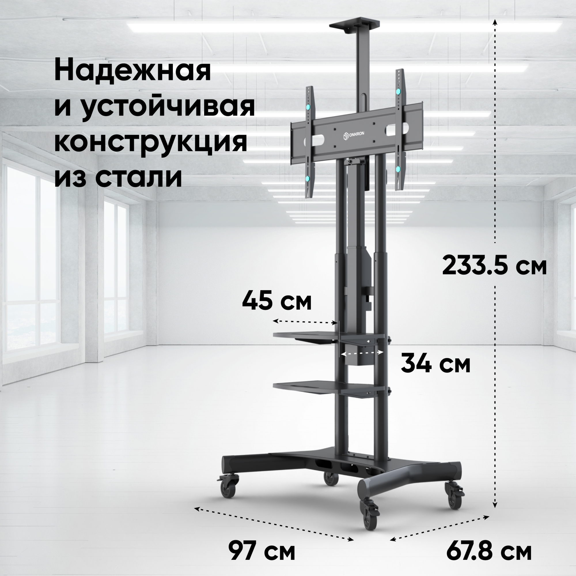 Материал: основание, колонны, VESA-панель - сталь; полка - пластик