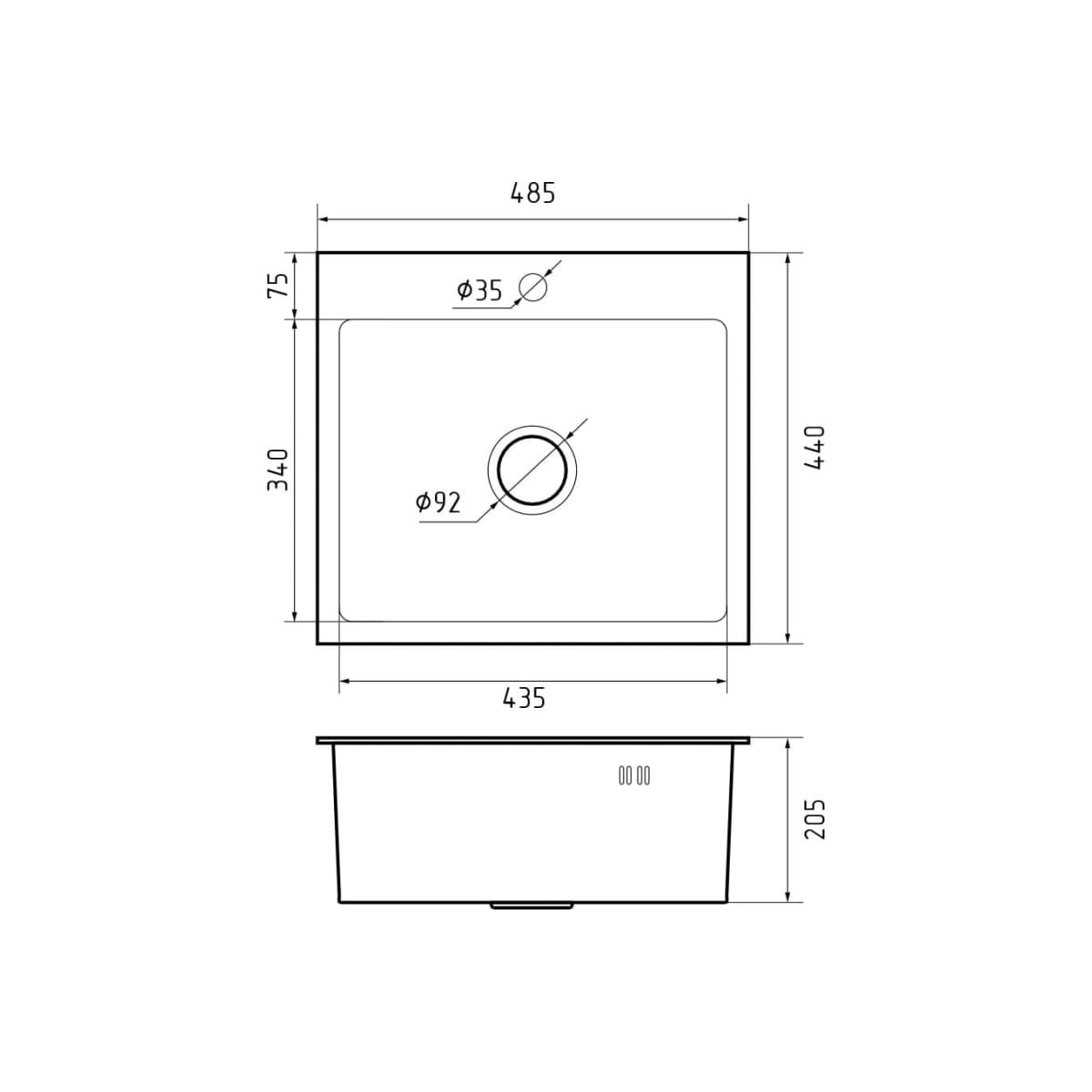 Диаметр сливного отверстия
