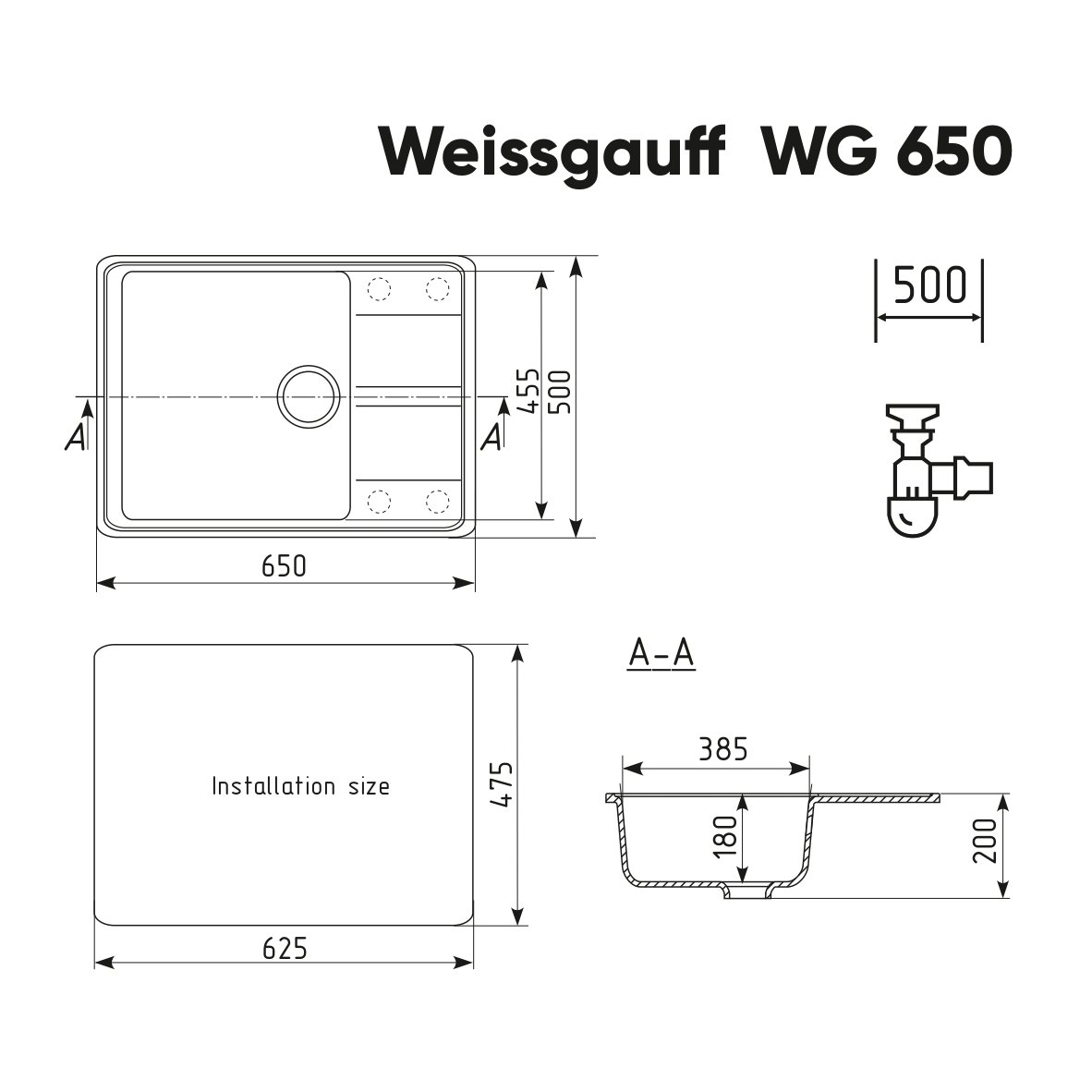 Габариты мойки, мм: 650 х 500 х 200