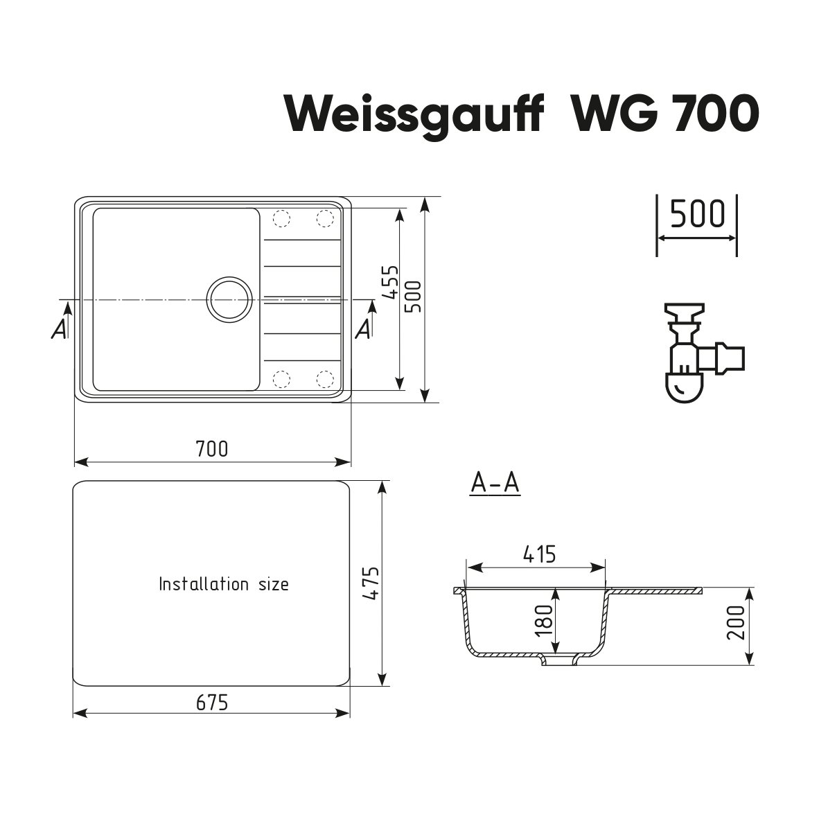Габариты мойки, мм: 700 х 500 х 200