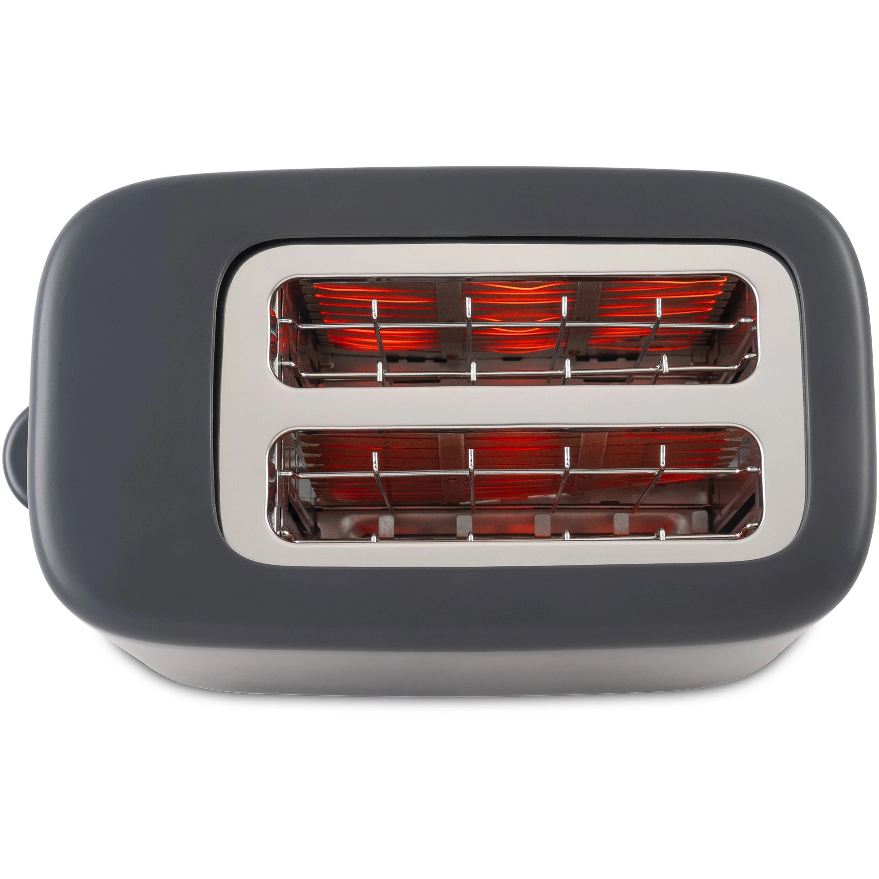 Компактный тостер со стандартными слотами для двух тостов, торцевое управление, трендовый серый цвет. Только тостер, все что нужно.