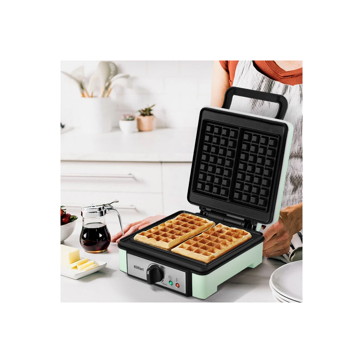 Технические характеристикиФормаклеткаПанель управлениямеханическаяСпособ установкинастольныйНапряжение220 ВПотребляемая мощность1.2 кВтМатериал корпусапластик/металлКоличество форм2Съемная панельнетТеплоизолированные ручкидаАнтипригарное покрытиедаТерморегулятордаЗащита от перегревадаЦветсветло-салатовыйДлина140 ммШирина237 ммВысота302 ммГабариты без упаковки140х237х302 ммВес нетто2 кг