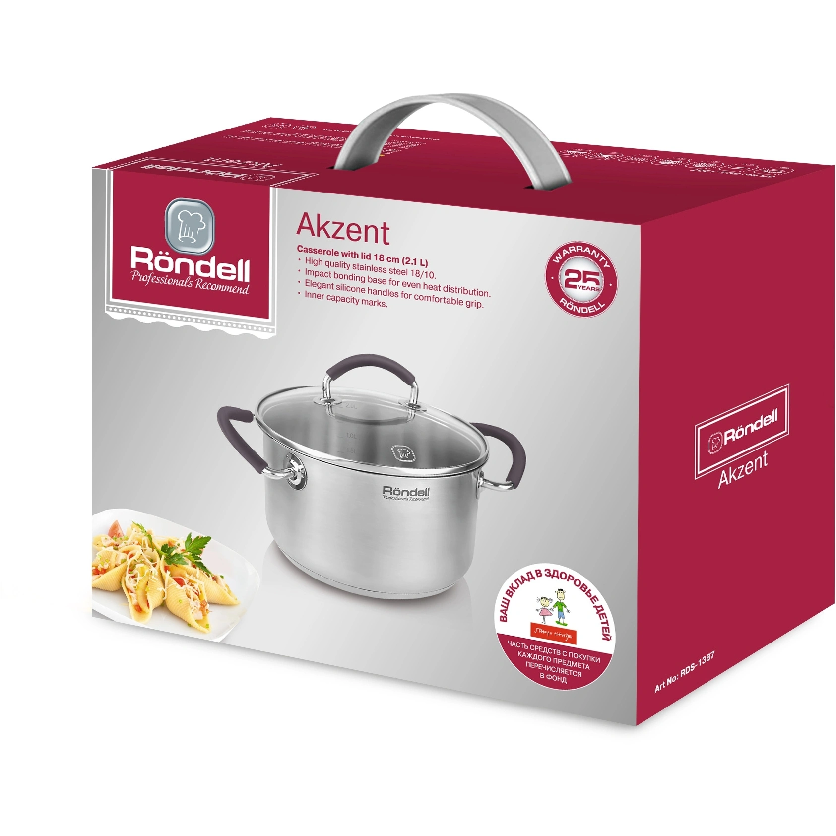 Материал: высококачественная нержавеющая сталь 18/10. Технология: тройное вштампованное, а затем вплавленное дно без воздушных полостей. Материал крышки: термостойкое стекло. Аксессуары: удобные комбинированные: нержавеющая сталь и силикон. Преимущества: эргономичная форма ручек.