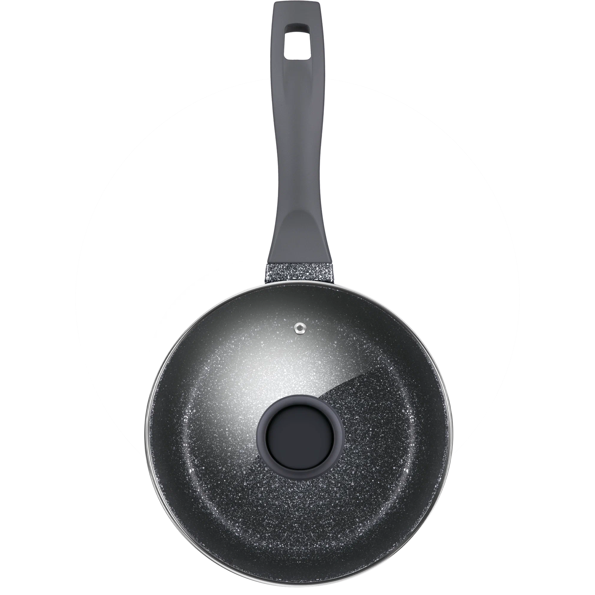 Эргономичная ручка из термостойкого бакелита с покрытием soft-touch не скользит в руке и не нагревается в процессе приготовления. Крышка с паровыпуском выполнена из жаропрочного стекла, с ободком из нержавещей стали.
